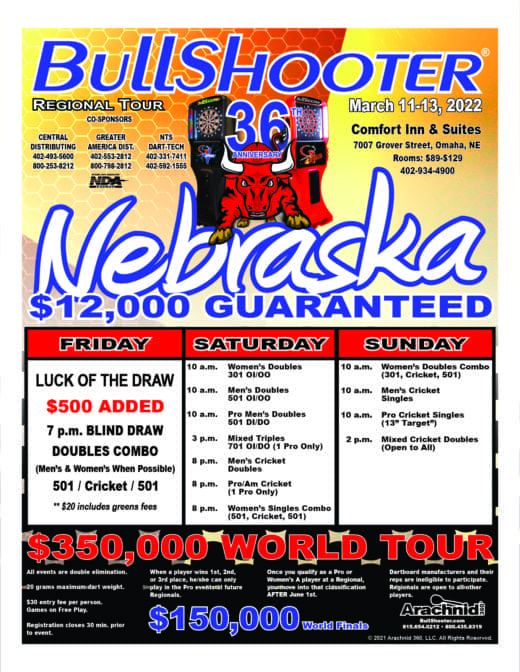 BullShooter tournament management reserves the right to evaluate entries based on knowledge of past tournament accomplishments in the sport of darting. It is the desire of Arachnid 360, and the A-Team, to provide as equalized competition as possible for all entrants. All decisions on placement will be prior to the event starting. All decisions by BullShooter tournament management are binding and final.